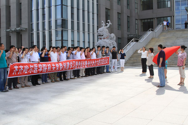 为纪念中国共产党成立90周年,传承弘扬党的优良传统和工作作风,以崭新的精神面貌迎接学院65周年校庆的到来,6月22日,机关党委组织机关全体党员开展了“忆誓词 美校园 促和谐”主题实践活动。