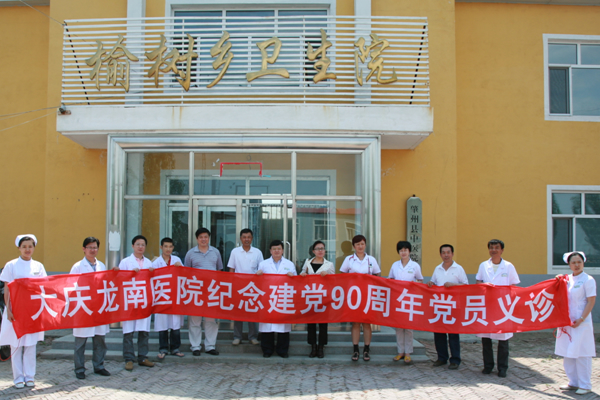为扎实推进“我为医院创品牌、我为医院树形象”主题实践活动,积极推动“创先争优活动”深入开展。6月17日,附属第五医院党委组织医院党员医疗队携带医疗设备远赴肇州县榆树乡开展“庆祝建党90周年党员义诊”帮扶活动。 当日8时,这支由循环内科、内分泌科、妇产科、心胸外科、普外科等13名医疗专家组成的党员医疗队从龙南医院出发,驱车两个多小时来到肇州县榆树乡卫生院为当地的村民义诊。义诊中,医疗专家认真地为前来咨询的村民讲解疾病相关知识、进行全面体检、开药方,并对一些健康卫生意识较弱、疾病预防知识匮乏的村民进行耐心讲解。一些专家还进入卫生院药房查看用药处方,针对榆树乡村民的用药特点向卫生院的年轻医生讲授用药常识及注意事项。 此次义诊共接待咨询诊治90人(次),测量血压50人(次),发放健康手册300册。据悉,龙南医院为迎接建党90周年已相继推出帮扶农村卫生先锋行动、百名优秀共产党员大型义诊等系列活动,把党的温暖送入千家万户,为把医院建设成为“全国名院、省内强院、油城百姓信赖的现代化三级甲等综合医院”做出了积极贡献。 (附属五院2011年6月23日供稿) 义诊党员合影