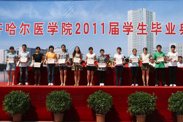 典礼仪式由学院党委副书记崔光成主持,学院副院长张晓杰、王晓星、姜凤楼分别宣读了学院批准2011届普招毕业生毕业及授予学士学位的决定、批准2011届乡村医生毕业的决定和命名表彰优秀毕业生的决定。