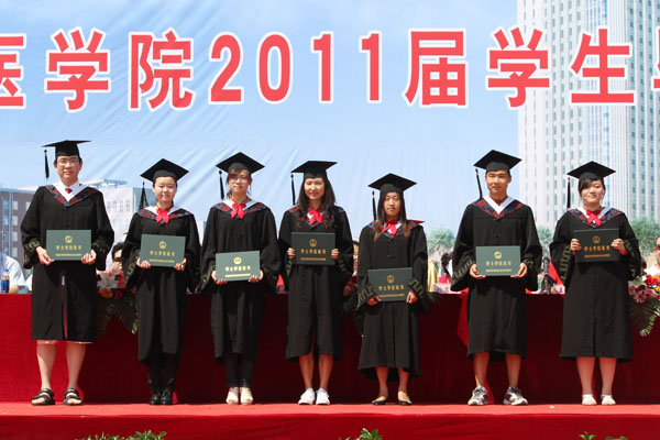 7月1日,是收获的日子、幸福的日子,也是分别的日子、开始的日子。上午10点,2392名本专科毕业生和135名乡村医生汇集在大医广场,参加2011届学生毕业典礼。学院领导刘吉成、崔光成、谭忠汉、姜凤楼、王晓星、张晓杰等出席典礼,为毕业生代表颁发了毕业证、学位证,并为优秀毕业生代表颁发了荣誉证书。