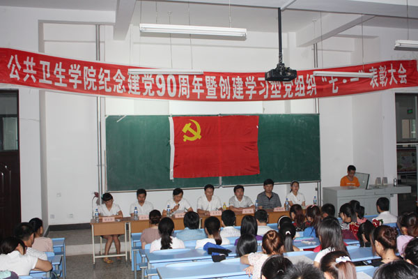 为重温党的历史,扎实推进学习型党组织建设与创先争优活动的深入开展,近日,公共卫生学院党总支先后开展了“学党史 知党情 跟党走”党史知识竞赛、“学党史 议变化 促发展”主题手机红色短信大赛、参观和平广场重温入党誓词、参观市博物馆观看主题展览等庆祝建党90周年系列活动。并于6月30日召开了庆祝建党90周年暨创建学习型党组织表彰会,会上对在学习型党组织建设和创先争优活动中涌现出的“学习型党员”、“学习型寝室”和先进个人进行了命名表彰。