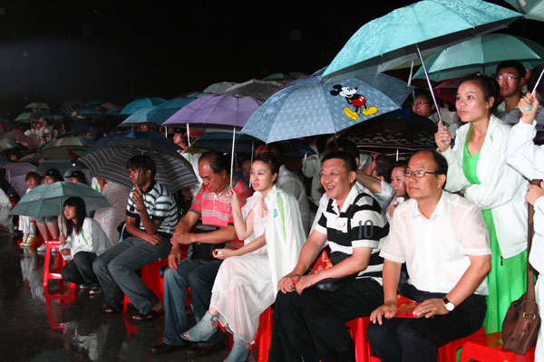 学院领导同师生冒雨观看演出