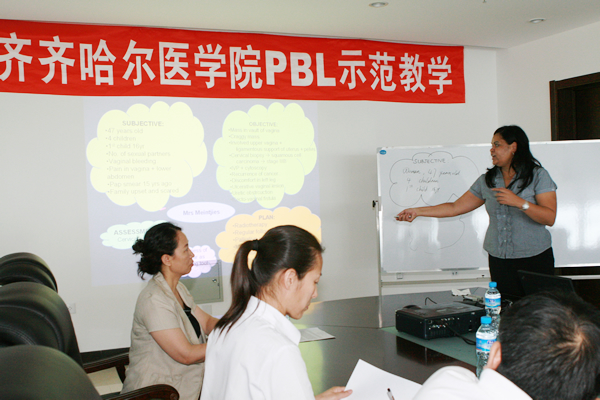 沃娜.莉娜教授是南非开普敦大学医学院生物化学与分子生物学系博士生导师,是开普敦大学医学院PBL教学领头人。她结合南非开普敦大学医学院PBL教学开展情况对PBL教学理念、PBL指导课的基本框架、案例设计、导师的角色和任务进行了详细的讲解。阐述了PBL的理论基础以及较传统理论课程的明显优势和特点。培训会后,沃娜.莉娜教授与我院10名教师进行了PBL示范教学,另有10余名教师观摩了示范教学。与会教师表示,此次培训帮助他们走出了PBL教学中的一些误区,使他们对PBL教学有了更为深刻的了解和更加科学的把握。