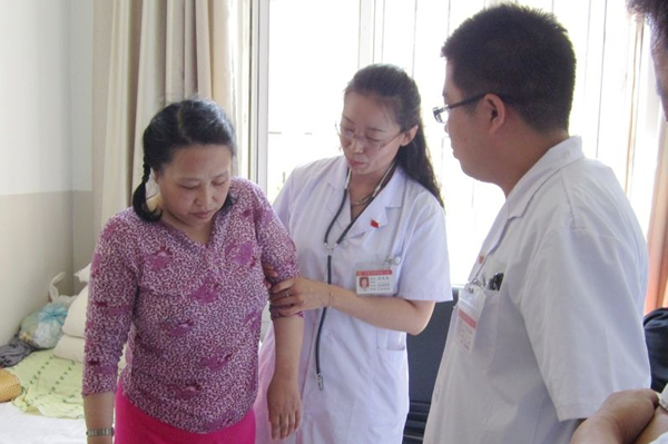 现年50岁的陈美春女士11年前患上了一种怪病,突然间不能行走,肢体瘫痪,卧病在床,听不到任何声音,后背和心前区疼痛感觉明显,经多方治疗,症状却无明显改善。2011年6月16日,陈美春经人介绍来到了附属二院精神卫生中心治疗,梁雪梅等医护人员为其进行了详细检查,确诊为癔症性瘫痪。医护人员对其采取心理治疗为主,药物治疗和ECT设备治疗为辅的策略,三周后,陈美春的耳塞全部被取出,她已能够正常感受外界声音,正常与人交流,并能自行下地行走。看到恢复正常的妻子,陈美春的爱人高兴至极,喜悦之情溢于言表,他们特邀请《直播鹤城》栏目组对此事进行了采访报道。