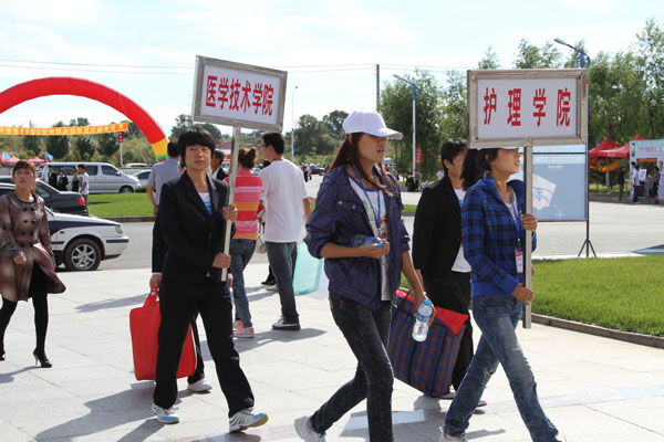 在迎新现场,记者还随机采访了正在办理报到手续的新生。来自甘肃的学生吴璇,今年考取了医学技术学院的检验专业,她说,一直关注学院的网站,对学院65年的历史和“大学至善、大医精诚”的办学理念有所了解,希望这五年,好好接受大医文化的熏陶,成为一名出色医生。来自基础医学院临床实验班的新生郑伟则表示,来到这里感到异常兴奋,学校的景观和建筑都很有特色,比网络上看到的还要漂亮百倍。而且学校的老师和学长更让他们倍感亲切,他非常喜欢这里,将来他要在这座美丽的校园内努力学习,报效祖国。