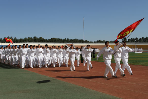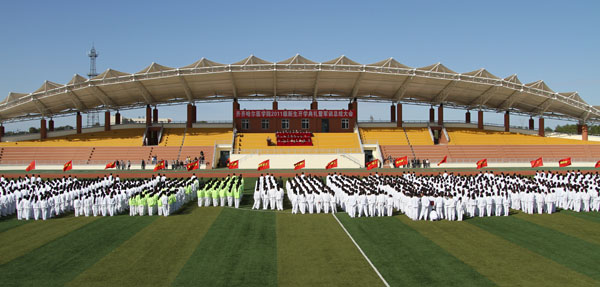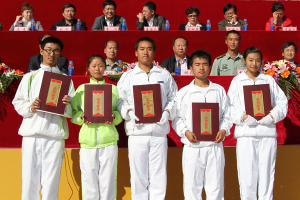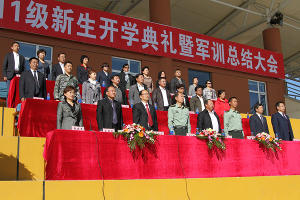 迎着九月的和风,沐浴着秋日的朝阳,2011级新生开学典礼暨军训总结大会在体育场隆重举行。学院领导邱福利、崔光成、谭忠汉、王晓星、丛明宇、张晓杰和部队首长、各院系党政负责人等出席大会。大会由学院党委副书记崔光成主持。