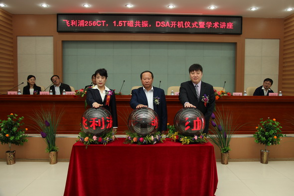 9月17日上午,附属三院隆重举行了“飞利浦256层极速CT、1.5T磁共振、FD20数字减影血管造影机”开机盛典暨学术讲座。学院党委书记邱福利、飞利浦东北地区销售总监薄涛、附属三院党委书记、院长毕红霞出席庆典仪式并开启了三台新设备的启动球。学院副院长丛明宇出席庆典仪式并致辞,仪式由附属三院党委副书记、纪委书记、工会主席张强主持。