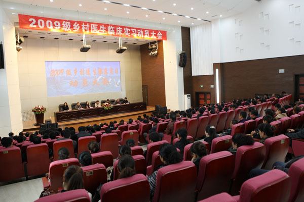 为贯彻实施省教育厅确定的农村卫生人才培养模式,提高乡村医生培养质量,10月24日,学院在图书行政楼二楼多功能厅隆重召开了2009级乡村医生临床实习动员大会。学院副院长张晓杰出席会议并讲话,教学研究与评估部主任、教务处副处长罗庆东、附属医院教学副院长和261名乡村医生参加了大会,大会由成人及继续教育学院院长肖锋刚主持。