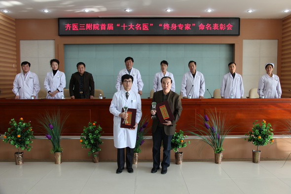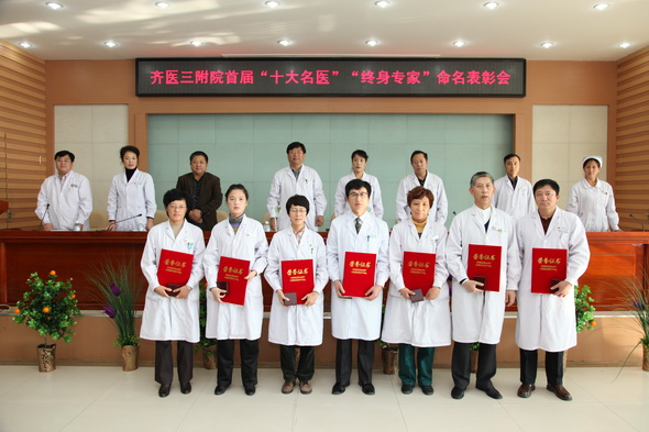 根据《齐齐哈尔医学院附属第三医院“终身专家”评选办法》、《齐齐哈尔医学院附属第三医院“十大名医”评选办法(2009-2010年度)》等文件精神,经过附属三院科技委员会的严格评选和投票表决,附属三院资深医生邵会权、刘惠明被授予“终身专家”荣誉称号,白玉江、毕红霞、陈尔东、关郁、李胜利、刘惠明、马增伟、张忠太、张艳焦、赵文杰荣获“十大名医”荣誉称号。受表彰人员积极践行崇尚医学,科学严谨,以人为本,奉献爱心的行医理念,为全院医生树立了“大医”楷模。