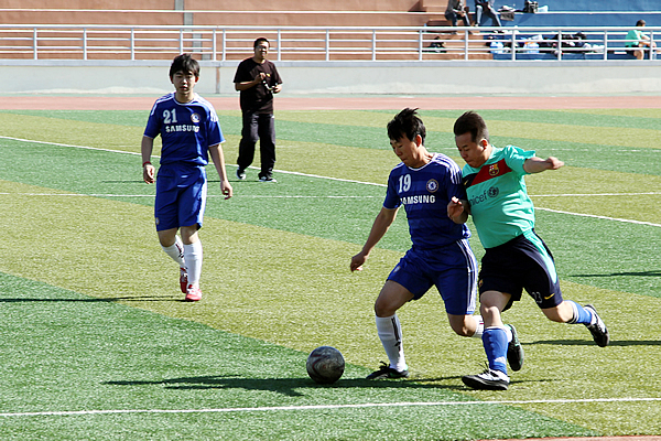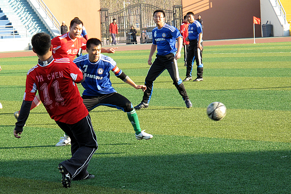 根据前四场比赛结果,本次联赛的冠亚军之争在院部和附属第三医院间展开。两队势均力敌,个人技术和整体配合都难分伯仲,比赛进行得异常激烈。上半场比赛进行到第35分钟,院部队终于以11号队员的一记任意球打破僵局,比分1:0;上半场即将结束时,附属第三医院7号队员一个长途奔袭,个人突破打进一球,将上半场的比分锁定在了1:1。下半场比赛开始后,院部队员继续保持良好状态,附属第三医院队员的士气也愈加高涨,开始反守为攻。下半场开场10分钟,院部队11号队员凭借一记远射命中,将比分改写为2:1。比赛进行到下半场第25分钟时,院部队7号队员在禁区内被绊倒,11号队员发出的点球被对方守门员扑出,被紧跟上来的6号队员补射命中,将比分改写成3:1。终场结束前5分钟,院部队12号队员接到队友的传中射门命中,将最后比分锁定在4:1,赢得了冠军。