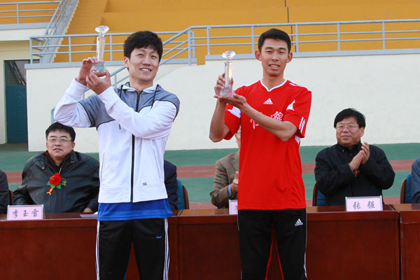 10月26日,由工会组织的第二届教职工足球联赛进行了最后两场比赛,激烈的争夺战将比赛气氛推向高潮,并决出了最后名次。院部队以4:1的大比分赢得了第二届教职工足球联赛冠军,附属第三医院队屈居亚军。在之前进行的附属第一医院与附属第二医院的交锋中,双方也是难分高下,最后比分定格为3:2,附属第一医院获胜,赛后两队分别获得了体育道德风尚奖和公平竞赛奖。院部队的11号队员陈云辉以个人5粒进球荣获最佳射手奖。学院领导崔光成、王晓星等为获奖者颁奖。