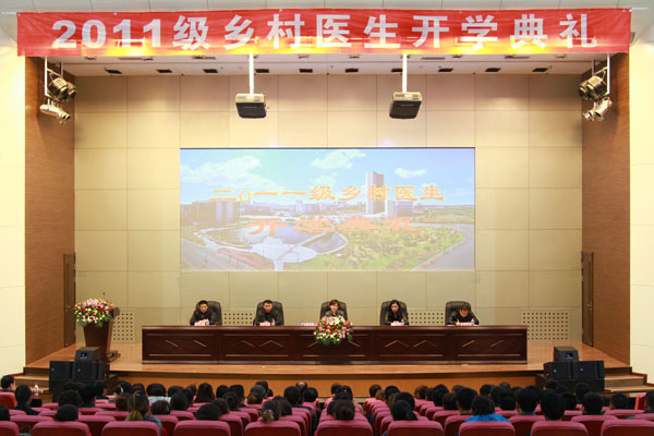 11月3日,2011级乡村医生开学典礼在图书行政楼二楼多功能厅隆重举行。学院副院长张晓杰出席会议并作重要讲话,成人及继续教育学院院长肖锋刚、教学研究与评估部主任、教务处副处长罗庆东、教务处副处长云长海、教师代表和121名乡村医生学员参加了开学典礼。典礼仪式由成人及继续教育学院院长肖锋刚主持。