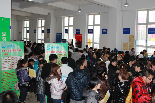 2012届毕业生冬季供需见面会于11月19日在我院春华城一楼大厅隆重举行,来自江苏、浙江、上海、云南、广东、新疆等省内外的70余家医药卫生机构前来参会,吸引了应届毕业生和在校生900余人前来应聘,毕业生共投出简历1825份,近300名毕业生与用人单位达成了意向性协议。