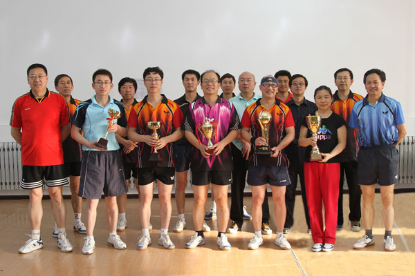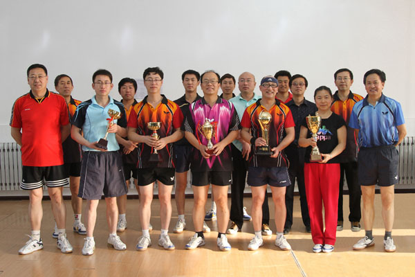12月2日,由学院工会主办,教职工乒乓球协会承办的院本部教职工乒乓球团体循环赛圆满落幕。经过20场循环赛的激烈争夺,由学院党委副书记崔光成带领的第一小组勇夺桂冠,第二小组、第三小组和第五小组并列第二名,第四小组获得季军。作为学院工会下设的第一个协会,教职工乒乓球协会自2002年成立以来,积极组织教职工开展乒乓球单打循环赛、团体循环赛等比赛活动,并利用元旦等节日开展各种联谊活动,在促进群众性体育运动的开展,增强教职工身体素质,丰富教职工业余文化生活等方面发挥了重要作用。 颁奖仪式现场