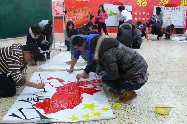 12月7日晚,校学生会在秋实城三楼举办了纪念“一二•九”学生爱国运动七十六周年板报设计大赛,来自校学生会、校社团联合会和各院系学生会的11支队伍参加了比赛。学生们以“纪念一二•九 弘扬爱国情”为主题,精心绘制出一幅幅充满激情的精美画卷。经过激烈角逐,基础医学院代表队勇夺桂冠。比赛结束后,所有参赛队伍的板报设计作品集中在主楼北区走廊进行了展示,激发了更多学生的爱国热情。