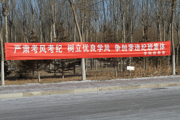 近年来,学院不断加大优良学风培育工作力度,大力开展诚信教育,注重发挥学生“自我管理、自我教育、自我服务”的功能,促进了良好学风和考风的形成。今年,学院继续树立零违纪院系、班级,取得良好效果。据教务部门初步统计,在2010-2011第二学期期末考试中,学院本部7个院系中只有1个院系实现零作弊,而在刚刚结束的2011-2012第一学期期末考试中,学院本部的零作弊院系已上升到6个。承担临床考试的9所附属医院和教学基地在这两次考试中全部实现了零违纪。 考场秩序良好宣传教育条幅
