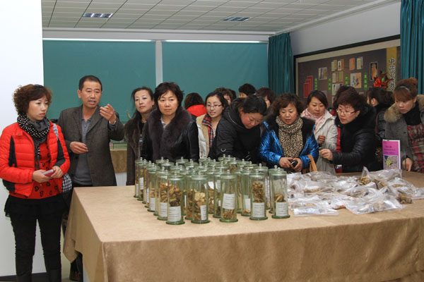 来宾一行参观中药标本馆
