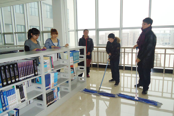 3月5日是学院开学第一天,学生们纷纷忙着为新学期做准备,却有一群学生来到图书馆进行义务劳动,这是 2010级临床1班的学生自发组织的“向雷锋学习”主题活动。