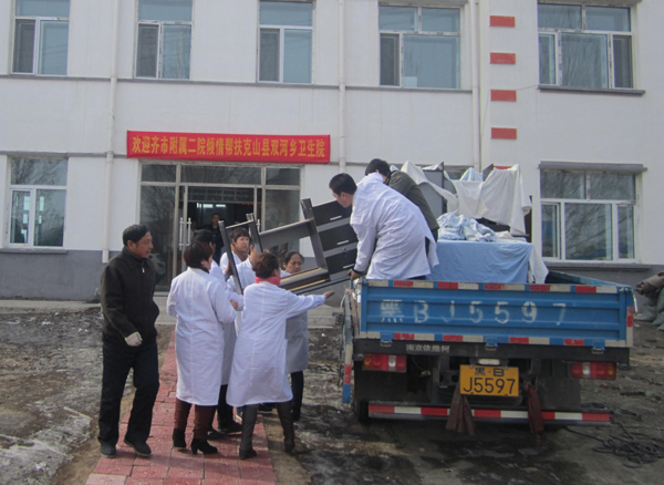 3月7日9时许,附属二院党委书记关维等一行3人,带着电脑、药品柜、卷柜、电脑桌、血压计、白服等价值3万元的帮扶物资,驱车3个多小时,为克山县双河乡卫生院送去了附属二院的一片真情。
