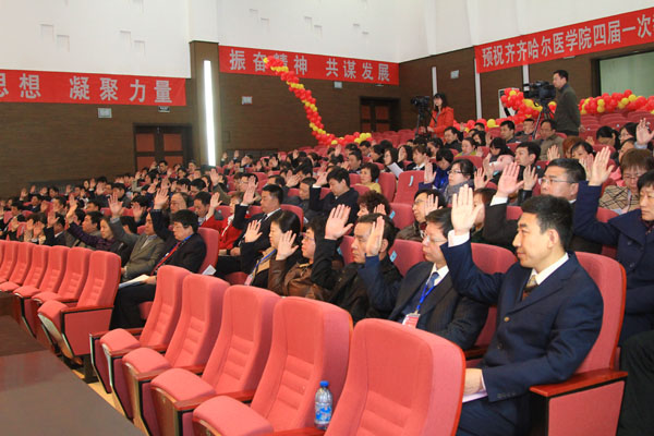 学院党委书记邱福利在闭幕会上作重要讲话。他强调了本次会议是在学院实施“十二五”发展规划、深入推进创先争优活动时期召开的一次重要会议,是学院政治生活中的一件大事。为贯彻落实好会议精神,他提出了具体的指导意见,一是必须牢固树立与学院同呼吸、共命运的发展意识和责任意识,紧密围绕学院中心任务,卓有成效地围绕“十二五”规划纲要开展工作;二是代表要提高自身素质,积极发挥自身在学院和教职工间的桥梁纽带作用,作热爱、理解、支持、服务学院发展建设的表率;三是各级党政领导干部要牢固树立全心全意依靠广大教职工办学的思想,高度重视民主管理、民主参与和民主监督,进一步加强对教代会工作的支持;四是全体教职工要振奋精神,把握机遇,立足本岗,创先争优,以主人翁的姿态投身学院发展建设,全面提升教学科研、医疗服务、管理工作的水平,推动学院又好又快发展。另外,邱书记指出,会议期间代表们履职尽责,畅所欲言,对学院今年乃至今后的建设与发展提出了许多真知灼见,值得学院党委和行政领导班子认真研究、思考和采纳。所有齐医人要携起手来,开拓进取,扎实工作,为落实好今年和“十二五”时期发展目标而努力拼搏,以优异成绩迎接学院第二次党代会胜利召开!向党的十八大献礼!