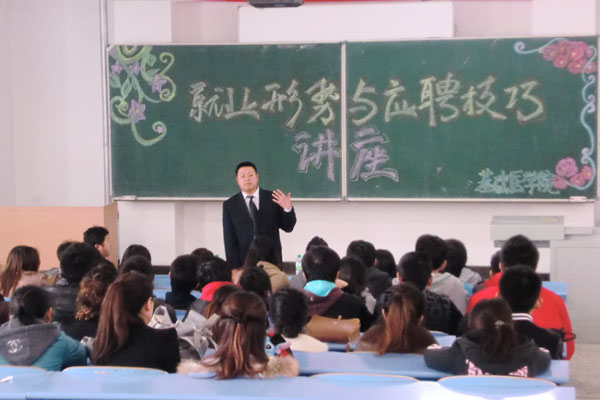 任忠保董事长以幽默风趣的语言,从个人姿态、饰物佩戴、礼貌礼仪以及用人单位相关知识了解等方面,深入浅出地讲解了如何做好应聘面试准备。随后,任忠保董事长就应聘的一般程序、应聘过程中的注意事项、常见问题、简历制作等方面作了详细讲解,并与现场学生进行了互动,收到了良好效果。此次活动响应了省厅关于开展“创业、创新、创优”活动精神,是基础医学院切实开展创先争优活动,为学生做实事、做好事的一项重要举措。
