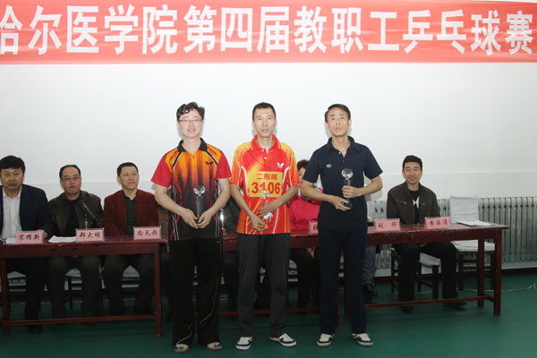 此次比赛由学院工会和体育部联合举办,得到了学院领导和各基层工会的大力支持。学院党委副书记崔光成出席开幕式并致开幕词,学院副院长姜凤楼观看比赛并为获奖代表颁奖,学院副院长丛明宇亲自出马参加了比赛。比赛设有男子团体、男子单打、女子团体、女子单打等项目,共有机关、教师联队、附属一院、附属二院、附属三院等5支代表队参赛。男子中年组决赛作为最后一场比赛,吸引了在场观众的眼球,比赛双方高超的技术、拼搏的精神,赢得了阵阵喝彩。
