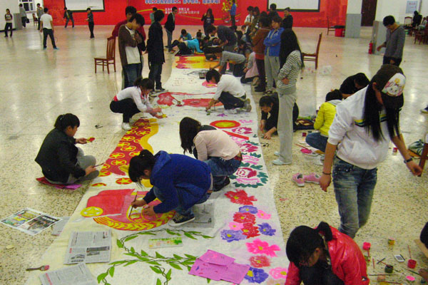 今年是五•四运动93周年,也是中国共产主义青年团成立90周年。为庆祝这两个重大节日,弘扬五·四爱国主义精神,近日,由学院团委主办、校学生总会承办的第十九届校园文化节系列活动之“高举团旗跟党走”长卷书画大赛在秋实城三楼大学生活动中心绚丽开笔,来自各院系的7支代表队近百名学生参加了此次活动。