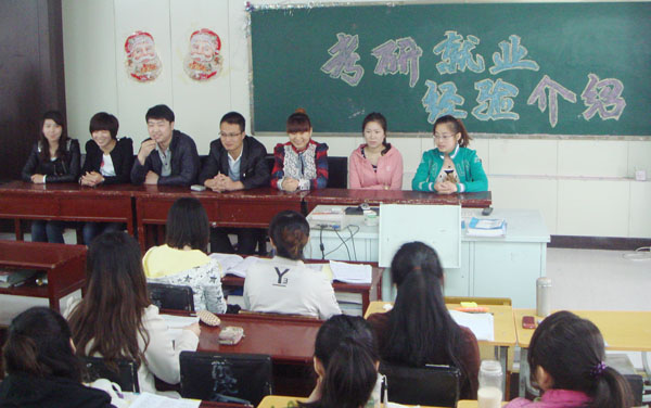 王扬、方华、王丽娜等同学均是07级妇本专业的优秀学生,经过努力拚搏,分别考取了哈尔滨医科大学、吉林大学、佳木斯大学的研究生,历莉莉、王艳华等同学把理论知识及实践操作相结合,在学院组织的大学生临床技能选拔赛中夺得团体第一,代表学院参加了在大连举办的东北赛区比赛,取得了优异成绩,为学院和附属一院争了光,现在,他们已成功与附属一院鉴订就业协议。这7名同学就学弟学妹提出的如何复习、如何选择学校、如何平衡学习与实习等问题进行了经验介绍。
