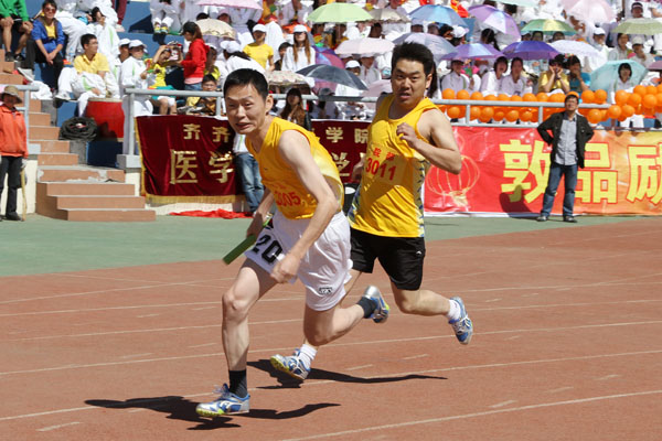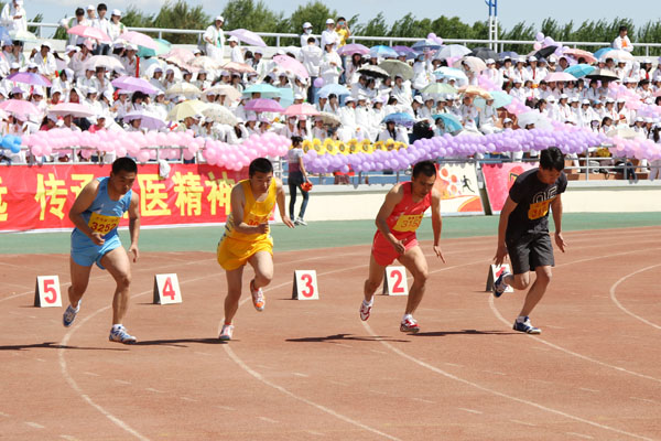 经过2天紧张而激烈的角逐,学院完成了第24届田径运动会的各项赛事,比赛于今日圆满落下帷幕。市第一医院代表队、院本部代表队、附属三院代表队分别获得职工组团体总分冠军、亚军和季军;基础医学院大三代表队、大一代表队和大二代表队包揽了学生组团体总分前三名;护理学院和药学院夺得团体操表演一等奖;所有参赛队伍均获得了体育道德风尚奖,另有3项比赛成绩在此次赛事中突破学院历史记录。学院领导邱福利、谭忠汉、王晓星、丛明宇、张晓杰等出席闭幕式并为获奖单位颁奖。