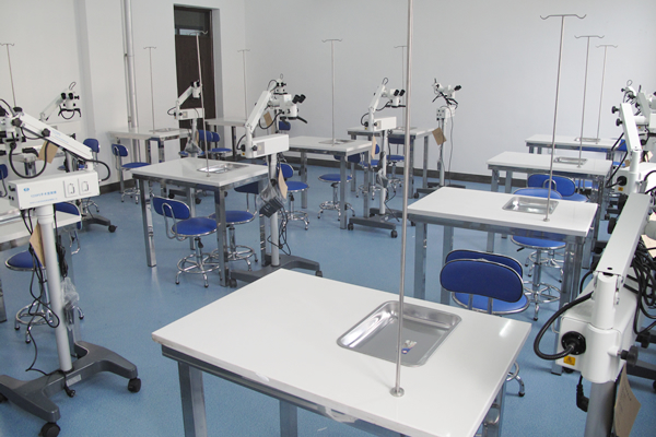 该中心总面积240平方米,设有眼科模拟手术室、暗室、眼视光学实训室、眼科综合技能实训室等,充分满足了眼科专业方向的实训需要。朝聚眼科医院集团投资近200万资金为中心购买了先进的眼科专业实训仪器设备,包括光学相干断层扫描仪、角膜地形图仪、非接触眼压计、眼科A/B超声诊断仪、角膜测厚仪、眼科手术显微镜、视觉电生理检查仪、自动电脑视野检查仪、电脑验光仪、同视机、角膜曲率计等大量精密先进的眼科检查治疗及眼视光学仪器设备。该中心不但是学生获得眼科专业基本技能的实践场所,还为学生掌握眼科专业边缘学科的知识技能搭建了广阔的平台。