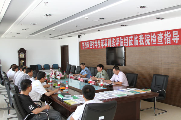6月21日下午,由省军区学生军训办公室副主任刘长晖为组长的省学生军事训练评估组一行4人莅临我院,对我院的学生军训工作进行检查指导。学院党委副书记崔光成、武装部、社科部、学工部、财务处、教务处等部门相关人员出席汇报会。