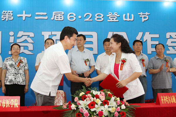 6月28日上午,学院党委书记邱福利、药学院院长李莉、药学院党总支副书记黄海涛等应邀参加了碾子山第十二届登山节招商引资项目合作签约仪式,并与碾子山区政府签订了“联合开发北药种植项目”协议。