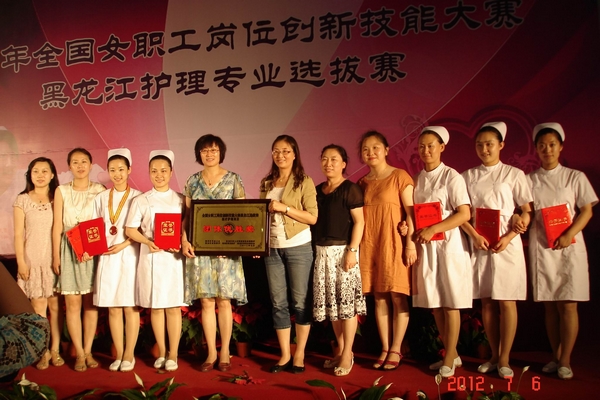近日,全国女职工岗位创新技能大赛黑龙江护理专业选拔赛在黑龙江省高等护理专科学校落幕。全省5所医学高校和23个地市级代表队参赛。经过激烈角逐,我院代表队不负重望,最终获得团体优胜奖。我院有三名选手在百余名参赛选手中脱颖而出,分别取得临床组第五名、儿科组第六名、重症监护组第七名的好成绩,并被授予“黑龙江省五一巾帼标兵”荣誉称号。