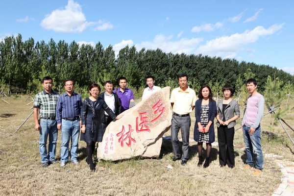 学院领导与省厅领导在“乡医林”前合影留念