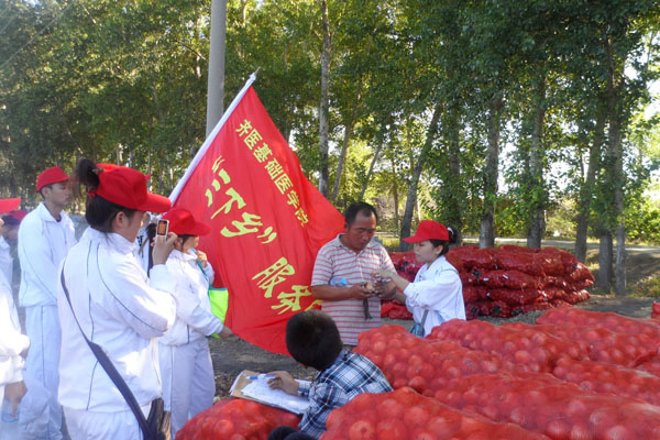 为落实学院《特色应用型本科高校建设方案》,在学生中开展职业情感教育,培养学生的社会适应能力,暑期期间,基础医学院开展了内容丰富的“三下乡”社会实践活动。10余个班级团支部服务队以“青春映沃土,献礼十八大”为主题,走出校门,走向基层,开展义务诊疗、支教、医药知识宣传、国家政策及社会热点宣讲等活动。