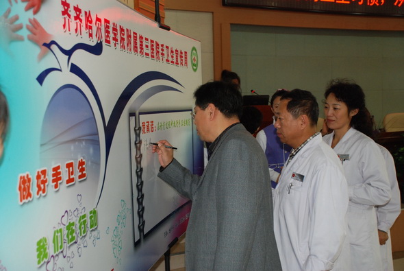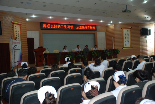 附属三院感控科代表医院感染管委会在活动启动仪式上宣读了倡议书,医院党委副书记、纪委书记、工会主席张强、副院长张忠太、李晓华等出席启动仪式,并与参会代表在“诊疗过程中认真执行手卫生规范”承诺板上郑重签字。随后,与会人员观看了由世界卫生组织制作的手卫生宣传教育片,感控科医生还对宣教片内容进行了详细讲解。同时,附属三院围绕手卫生健康知识,组织有关人员进行了考试,并评出一、二、三等奖,进一步强化了医务工作者的用手卫生规范意识。