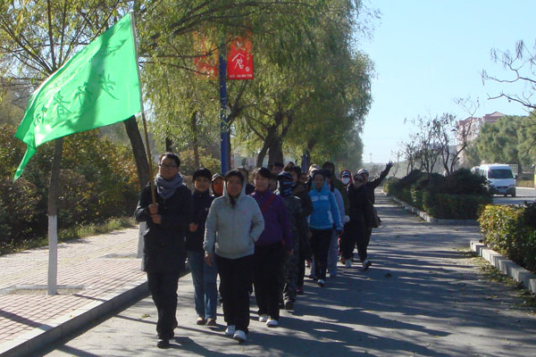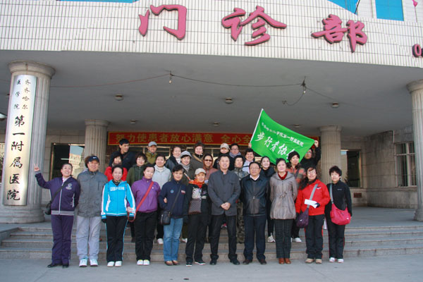 活动得到了附属一院领导的大力支持,活动当天,附属一院党委书记郭金城、院长张嘉伟、工会主席刘晖等亲自到门诊楼外为队员送行。随着出发号令的发出,27名队员在“齐齐哈尔医学院第一附属医院步行者协会”绿色旗帜引导下,精神抖擞地走在向阳大街上,成为街区一道亮丽的风景。参加此次远足活动的有医院中层干部,有普通职工,还有4名退休人员,他们用实际行动走出了文明与健康,走出了绿色与环保。此次远足活动陶冶了附属一院职工的情操,舒缓了他们的工作压力,践行了“发扬团队精神,提升综合素质,工作运动两不误,身体身心两促进”的协会宗旨。