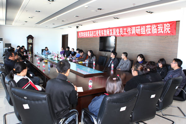 汇报会上,党委组织部部长姜国庆向调研组全面汇报了学院2008年以来青年教师发展党员工作的具体做法、工作经验及存在问题,并就有关工作与调研组成员进行了深入交流。汇报会后,调研组召开了非党员青年教师和青年党员教师座谈会。通过调研,调研组成员对学院青年教师发展党员工作给予了较高评价,认为学院党委高度重视青年教师发展党员工作,取得了较大的工作成绩。