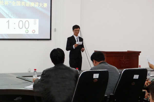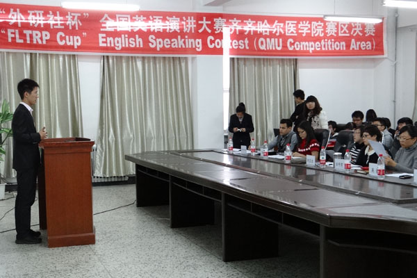 近日,“外研社杯”全国英语演讲大赛齐齐哈尔医学院赛区决赛在教学主楼350会议室成功举办。外语部主任程前光、基础医学院副院长高音、外籍教师Emma、Christine和 Sandeep等担任比赛评委。经过激烈角逐,2011级学生凌佳音从11位入围决赛选手中脱颖而出,获得本次比赛冠军,并将代表学院参加“外研社杯”全国英语演讲大赛黑龙江赛区决赛。