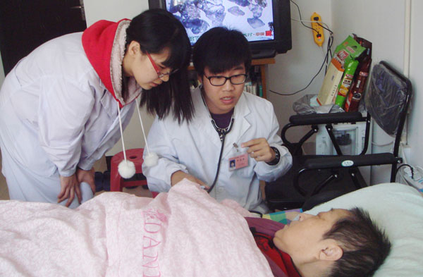 学生们为老人准备了精彩的文艺节目,还为老人量血压、听心律,开展健康知识宣传。对于行动不便的老人,学生挨个到老人的房间为他们体检。慰问过程中,一位老人在静脉输液时不小心“滚针”了,家庭护士又不能及时赶到,附属一院一名学生利用静脉穿刺技术,使老人中断的输液继续下去。学生们的热心与技能,得到了老人们的赞许与认可。两个小时的慰问活动中,学生们还听老人们讲述了他们那一辈人甘于奉献的故事,让学生们感触颇深,受益匪浅。