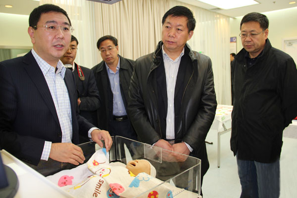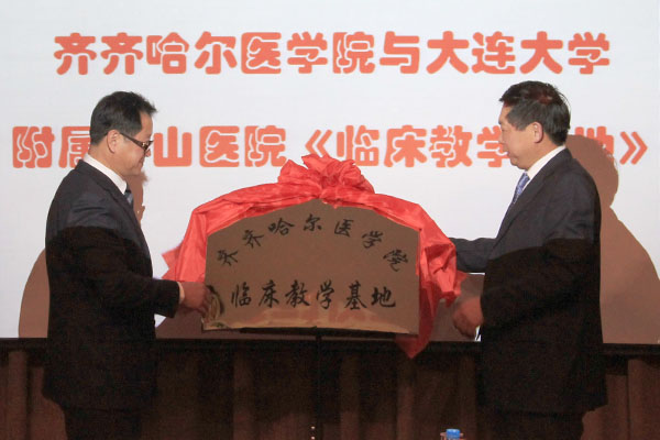 考察学习期间,刘吉成院长一行听取了北京市卫生局副局长雷海潮博士对卫生改革主要政策与公立医院改革思路模式的介绍。随后,考察团一行赴天津参观了天津大学国际医学院的模拟医院教学设施,在大连大学附属中山医院听取了该院院长赵德伟及其他主管院长就医院发展规划、临床科学研究、学科专业建设及远程医疗与管理等方面的情况介绍,并与大连大学附属中山医院举行了临床教学基地签约及揭牌仪式。