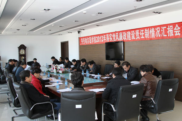 11月9日,学院党委在图书行政楼1804会议室召开了2012年落实党风廉政建设责任制情况汇报会。学院党委书记邱福利、党委副书记、院长刘吉成、党委副书记谭忠汉到会听取汇报,汇报会由学院纪委书记毕红霞主持。