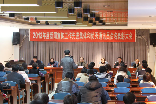 会上通报了2012年各单位、部门校园网和《齐医报》发稿情况,隆重表彰了在2012年新闻宣传工作中做出突出贡献的8个先进集体和30名优秀通讯员。学院党委副书记崔光成在会上作重要讲话,他充分肯定了一年来新闻宣传工作为学院各项事业发展进步所做的贡献。他指出,宣传工作事关学院发展全局,是一项系统工程,希望全院上下要凝心聚力,巩固成绩,进一步增强责任感和使命感,牢固树立大宣传意识,构建起全员参与、上下联动、内外互动的大宣传格局;要开拓创新,聚焦热点,围绕学习贯彻十八大精神、开展临床医学专业认证、推进学习型党组织建设和创先争优活动、加强校园文化建设等重点工作,不断提高新闻宣传的质量和效果;要拓展渠道,加强外宣,积极宣传报道学院办学思想、办学特色、改革发展的新成就、新举措、服务经济社会发展的新贡献等,共同开创学院新闻宣传工作新局面。