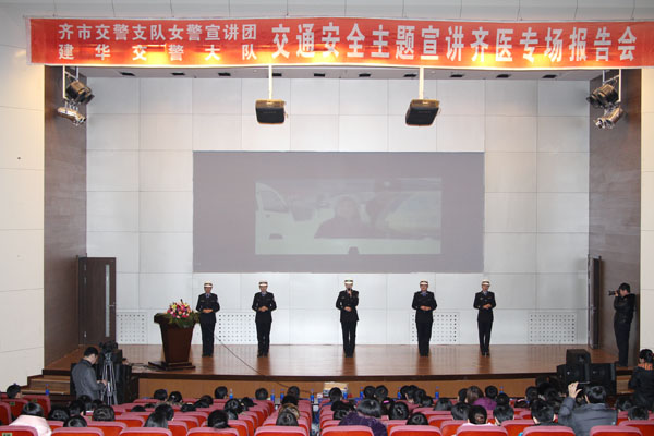报告会上,女警宣讲团围绕“遵法守法,珍惜生命,远离车祸,警钟长鸣”这一主题,结合大量影音资料和典型案例,剖析了交通事故对社会和家庭的危害,强调了增强交通安全意识、自觉遵守交通规则的重要性。建华区交警大队警员张晨亮用深入浅出的语言介绍了与学院师生密切相关的交通法规和常识,并从如何预防交通事故、面对交通事故如何互救和自救等方面进行了认真讲解。