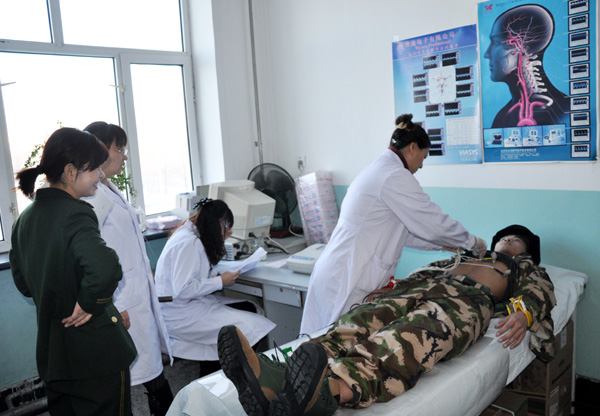 为新兵作心电检查
