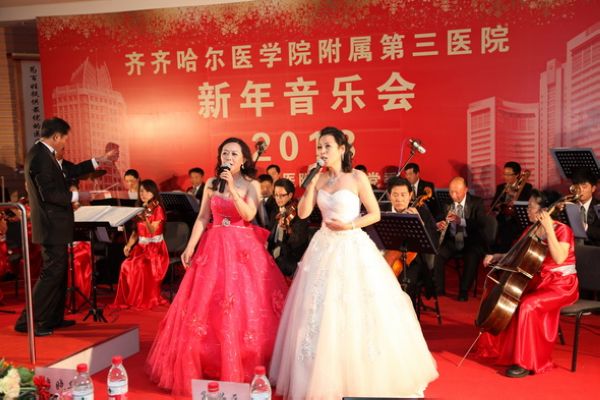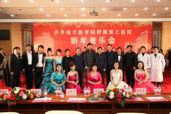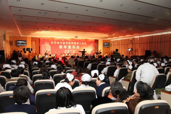 为庆祝党的十八大的胜利召开,推动医院文化建设,丰富医院职工文化生活,12月26日,附属三院隆重举办了2013新年音乐会。学院党委副书记谭忠汉、副院长丛明宇、学院纪委书记、附属三院党委书记、院长毕红霞、学院工会副主席宋耀新、附属三院领导班子全体成员及全体职工共同欣赏了音乐会。