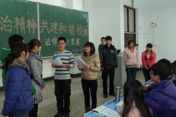12月14日,药学院学生会举办了“传承法治精神,共建和谐校园”法律知识竞赛。来自2011级与2012级9个班的10名同学参加了比赛。竞赛以组队问答形式进行,最终2011级代表队胜出。赛后,同学们纷纷表示学院举办的法制宣传系列活动很有意义,让他们受益匪浅,学生们还表达了要用实际行动为创建文明和谐校园而努力的决心。
