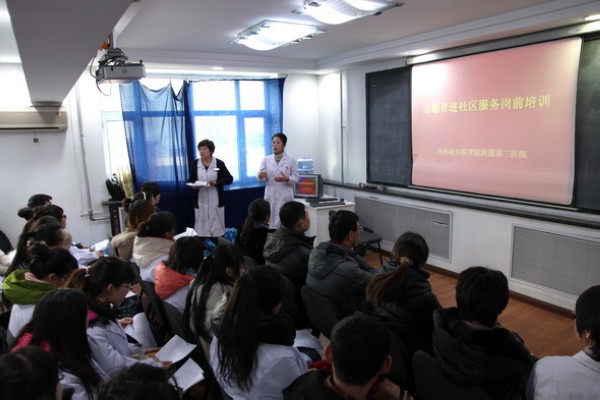 为提高大学生思想道德品质,培养大学生社会适应能力,附属三院开展了以大学生为主体的深入社区家庭、服务社区居民的志愿服务活动,并由临床医师和社区中心保健医师为学生作指导。