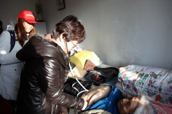 1月9日,由40名大学生、10名临床医师和5名社区中心保健医师组成的志愿服务队在附属三院副院长李晓华的带领下,来到站前社区居民家中进行了首次志愿服务,为该社区20户有慢性疾病的老年人家庭作医疗服务。志愿者为老人进行了健康体检,建立了健康档案,发放了志愿服务联系卡,方便老人电话咨询。志愿服务队还特地为老人送上了健康保健小礼盒,表达了附属三院大学生志愿服务队对老人的一份心意。5个志愿服务小分队用亲切的语言和周到热情的服务赢得了社区老人的好评。