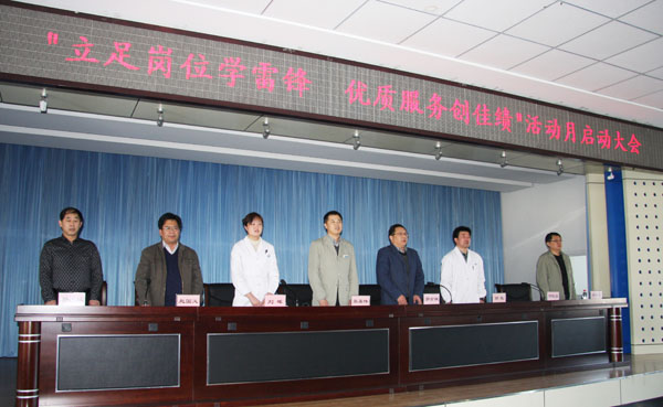 3月5日,在毛泽东同志“向雷锋同志学习”题词发表50周年之际,附属一院党委召开了“立足岗位学雷锋 优质服务创佳绩”活动月启动大会。医院党委书记郭金城、院长张嘉伟分别在会上讲话,副院长胡凯布置了活动内容,会议由附属一院纪委书记刘晖主持。